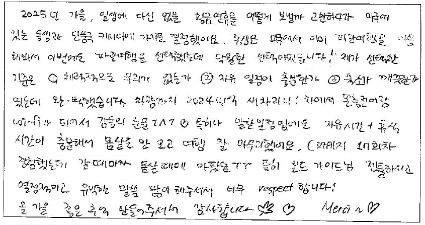 2025년 10월 6일 출발 퀘벡+몽트랑블랑 자필후기(4-1호차)