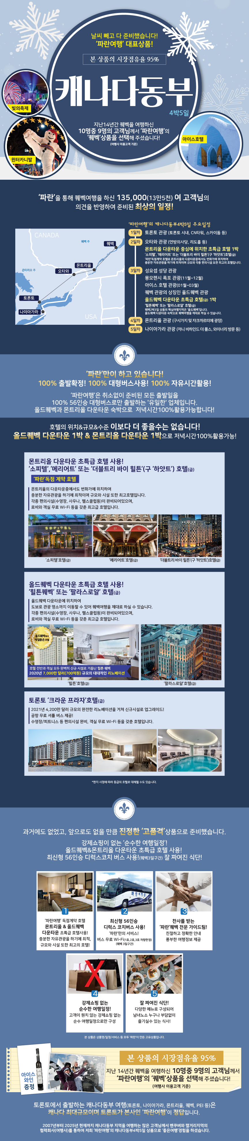 ‘파란’을 통해 퀘벡여행을 하신 13만 5천여 고객의 의견을 반영하여 준비한 최상의 일정!