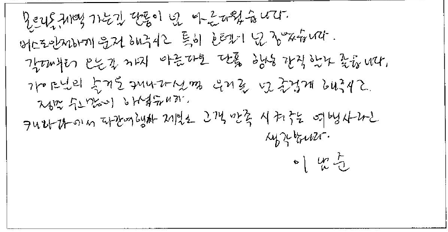'파란여행' 강추. 가성비 최고. 열정적인 사명을 갖고 임하시는 가이드님들 완전 감동!! 호사를 누리고 행복하게 마무리합니다. 다시 올 것을 생각하며, 한국 가서 '파란여행'을 자랑할 겁니다. 매 스케줄마다 고맙고 놀라움의 연속이었습니다.