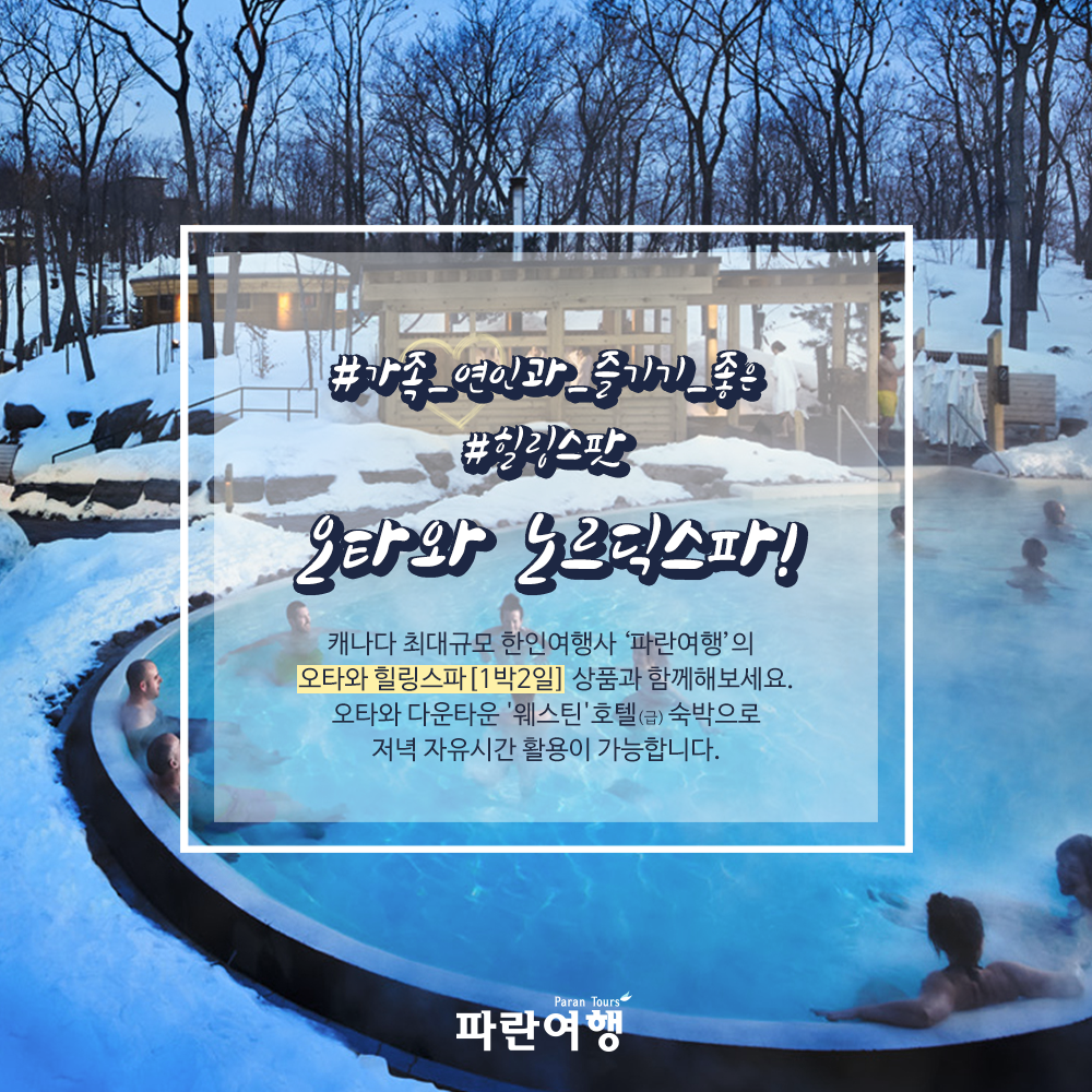 캐나다 최대규모 한인여행사 '파란여행'의 오타와 힐링스파[1박2일] 상품과 함께해보세요.