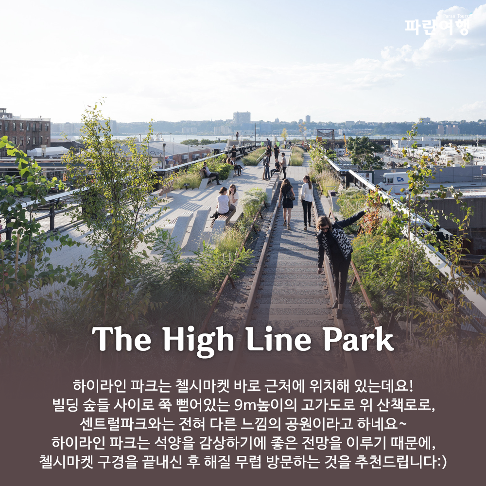 하이라인 파크는 첼시마켓 바로 근처에 위치해 있는데요!