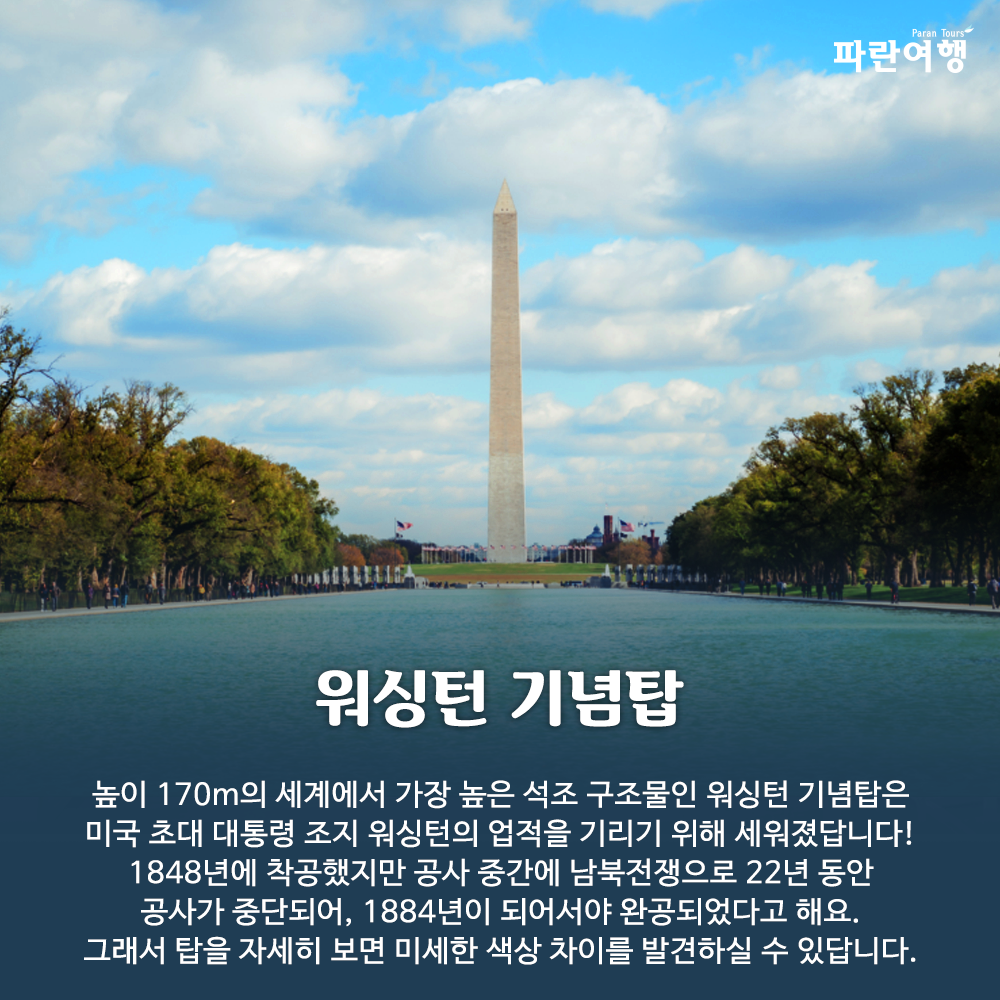 미국 초대 대통령 조지 워싱턴의 업적을 기리기 위해 세워졌답니다!