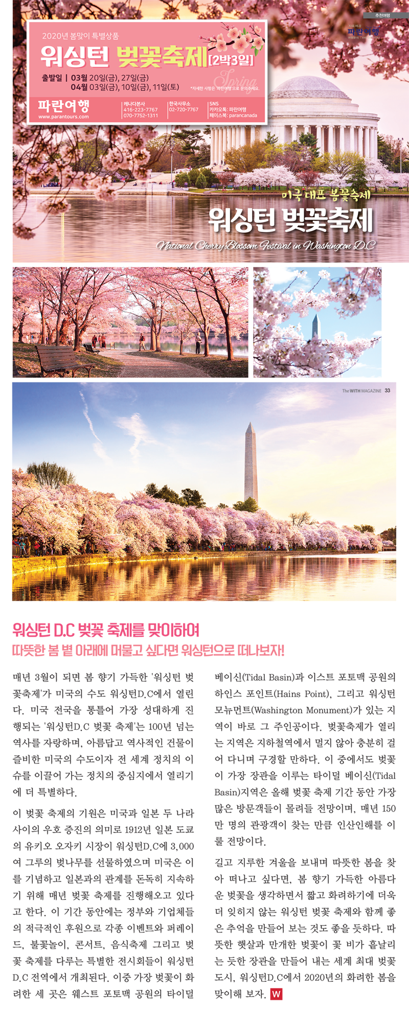 제목 | 2020년 03월 컬럼 - 미국 대표 봄꽃축제, 워싱턴 벚꽃축제! | ||