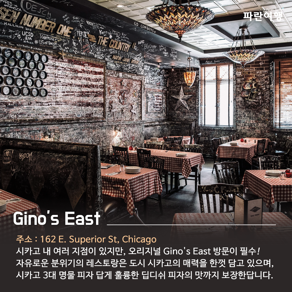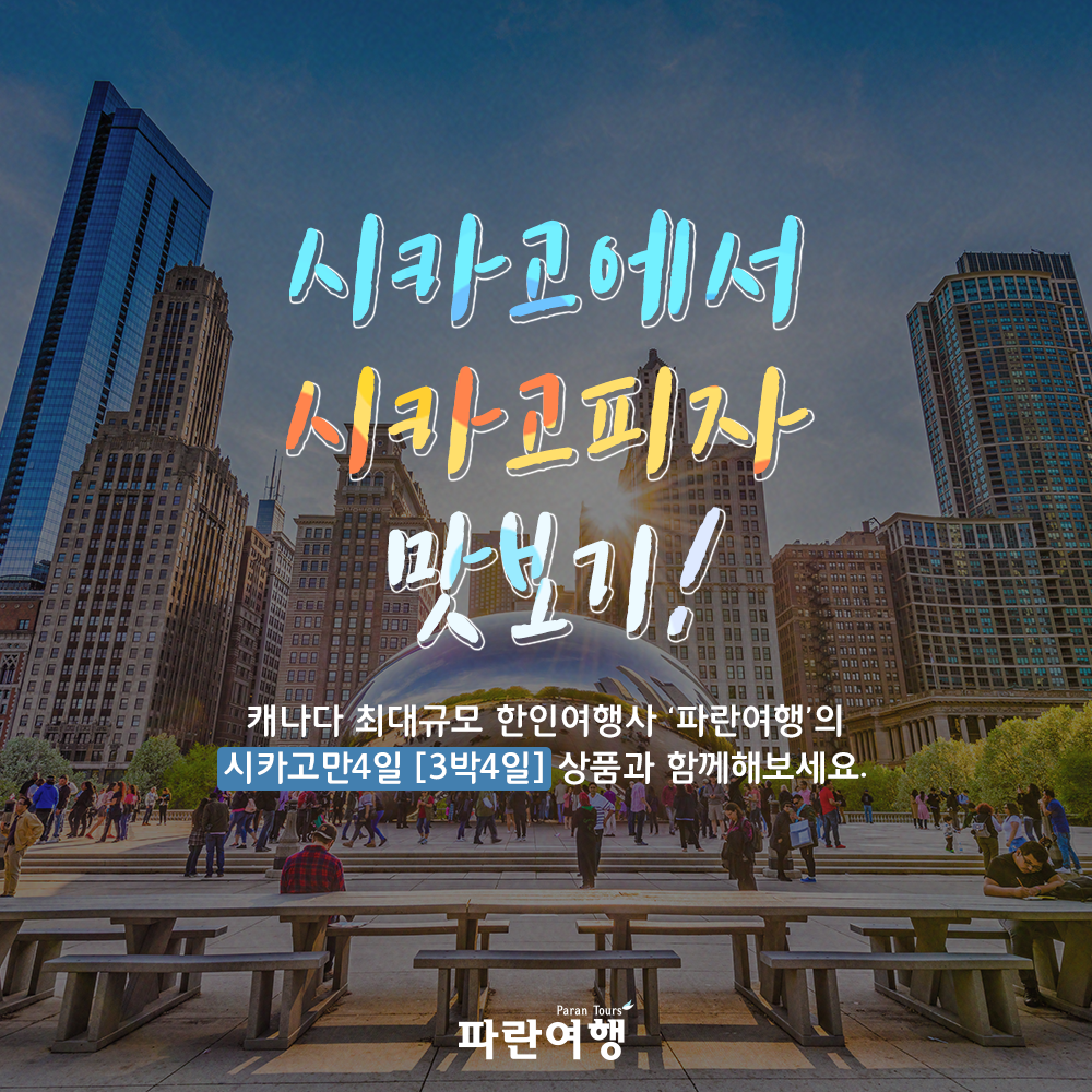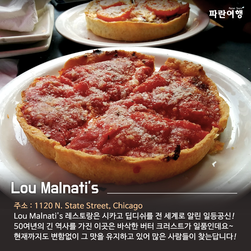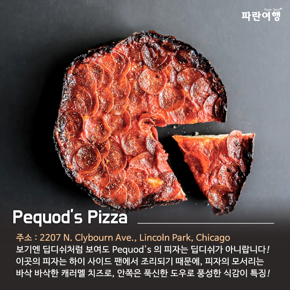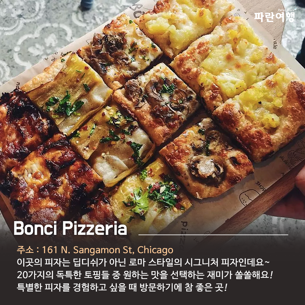 ![]() < 시카고 피자 맛집 BEST5> 시카고피자는 시카고에서! ![]() # Gino's East 주소 : 162 E. Superior St, Chicago ![]() # Bonci Pizzeria 주소 : 161 N. Sangamon St, Chicago ![]() # Pequod's Pizza 주소 : 2207 N. Clybourn Ave., Lincoln Park, Chicago ![]() # Lou Malnati's ![]() # My Pi Pizza 주소 : 2010 N. Damen Ave East, Chicago ![]() #미국여행 #시카고여행 #시카고피자맛집 캐나다 최대규모 한인여행사 ‘파란여행’의 시카고만4일 [3박4일] 상품과 함께해보세요. 파란여행 홈페이지: www.parantours.com |