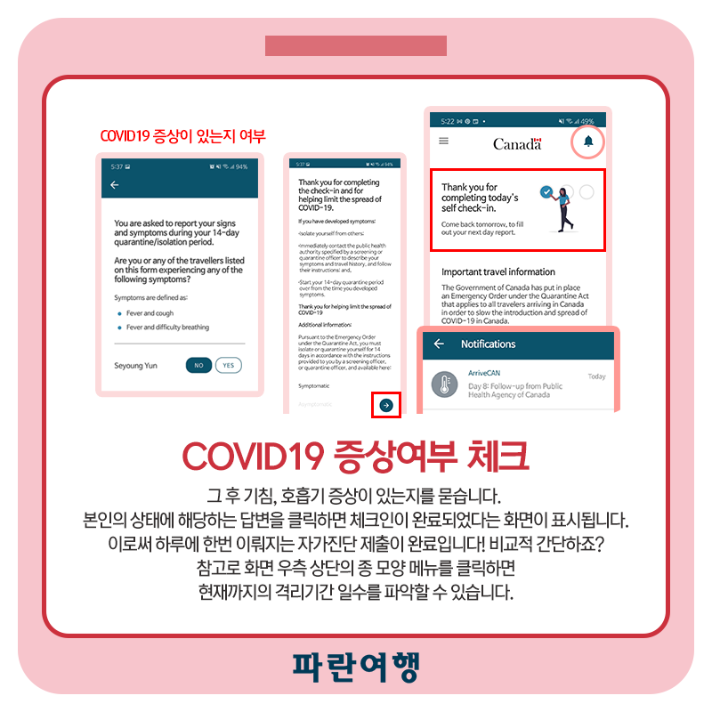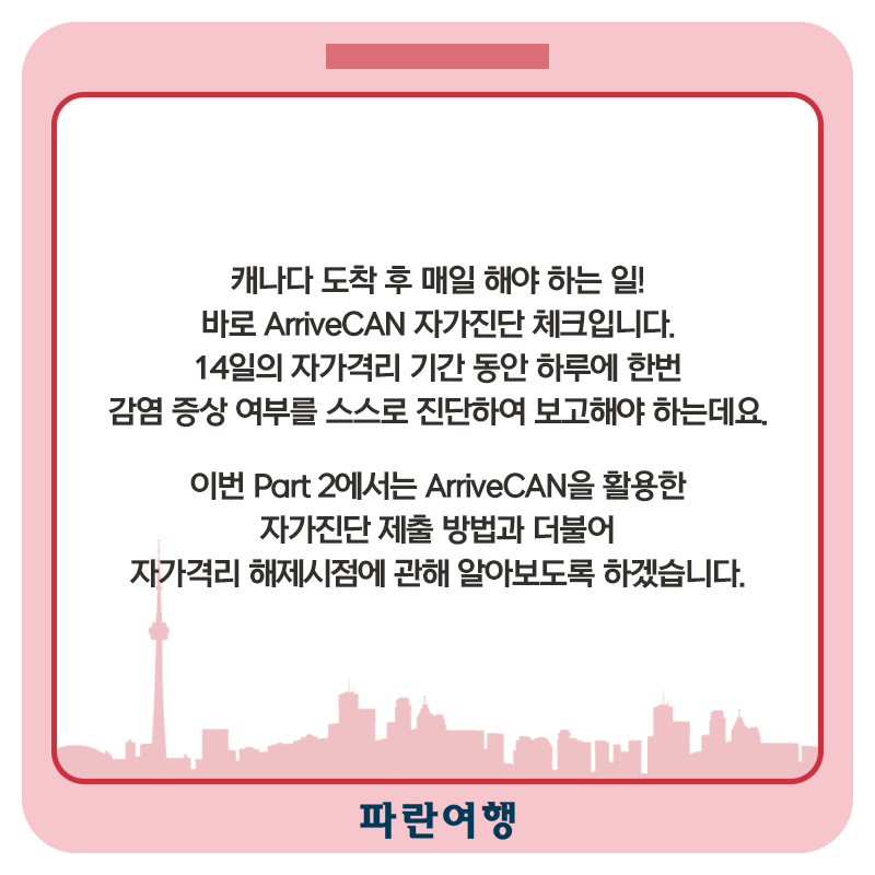 제목 | 캐나다 입국 후 ArriveCAN 이용법&자가격리 해제 시점(Part 2) | ||