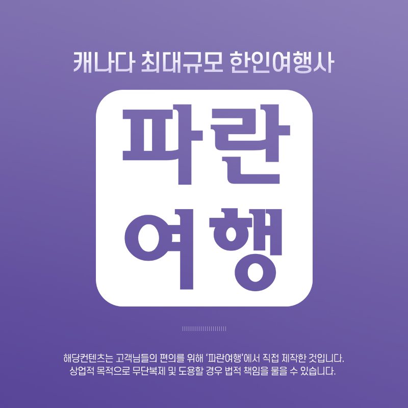 캐나다동부출발 여행상품의 시장점유율 96.89%가 입증하는 캐나다 최대규모 한인여행사 '파란여행'