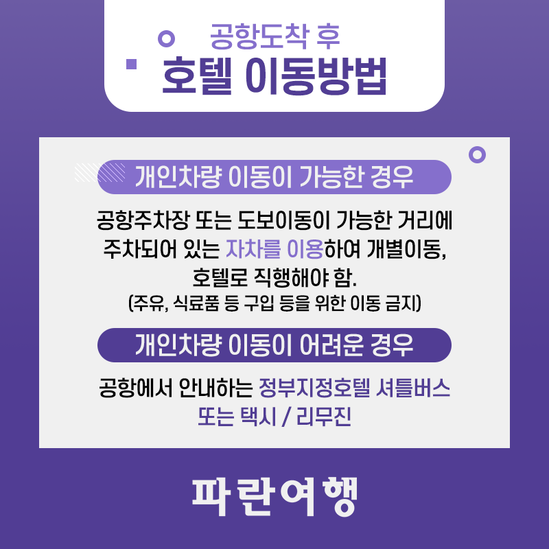 제목 | 호텔격리 상세내용 - 호텔 이동방법, 격리수칙 및 체크아웃 절차, 호텔위치 간략맵 | ||