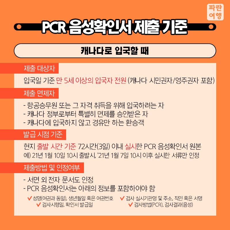 제목 | PCR음성확인서 최신 업데이트 규정- 제출기준 및 캐나다 주별 PCR 검사장소 | ||