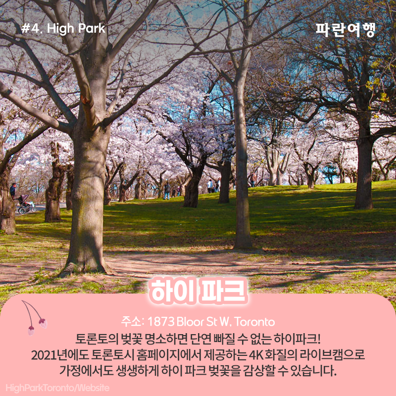 제목 | [포스트코로나 슬기로운여행] 토론토GTA 벚꽃구경 명소 / 토론토 벚꽃 핫스팟 BEST5 | ||