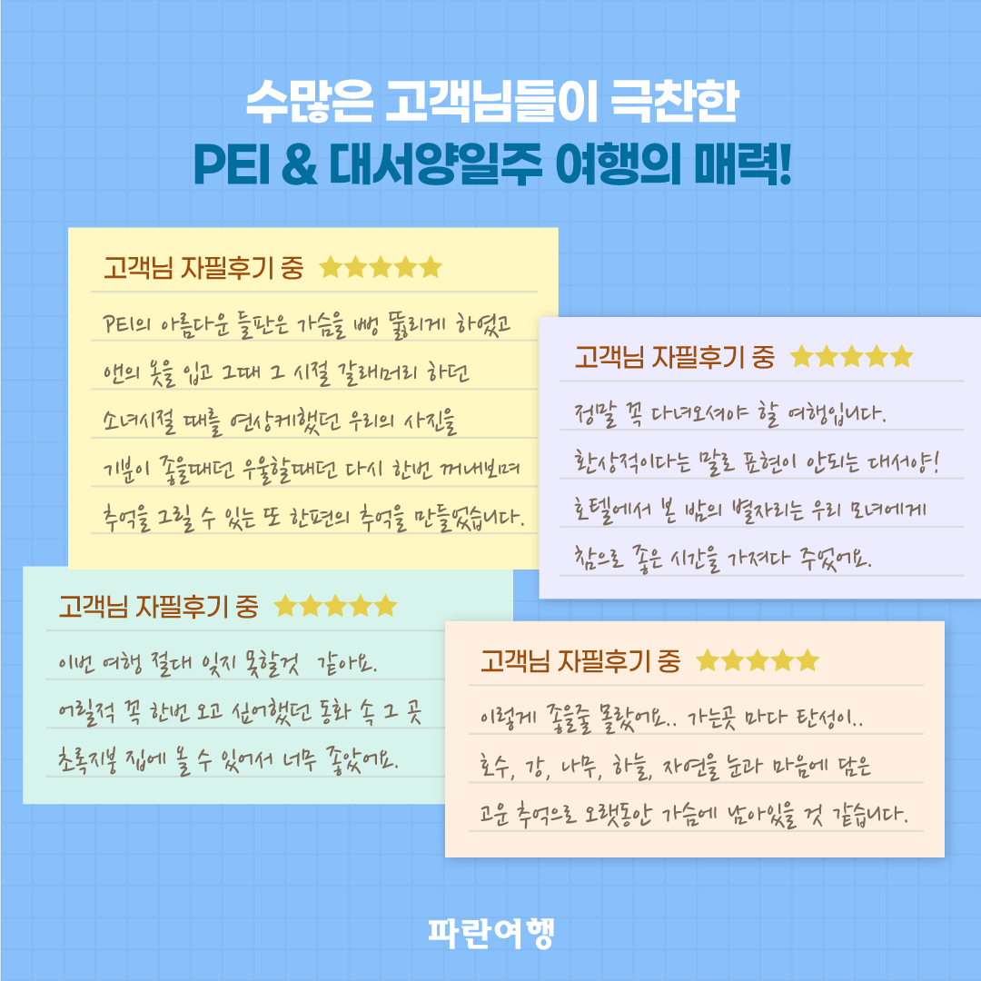 제목 | 캐나다 여름여행의 꽃! PEI도 '파란'과 함께하세요! | ||