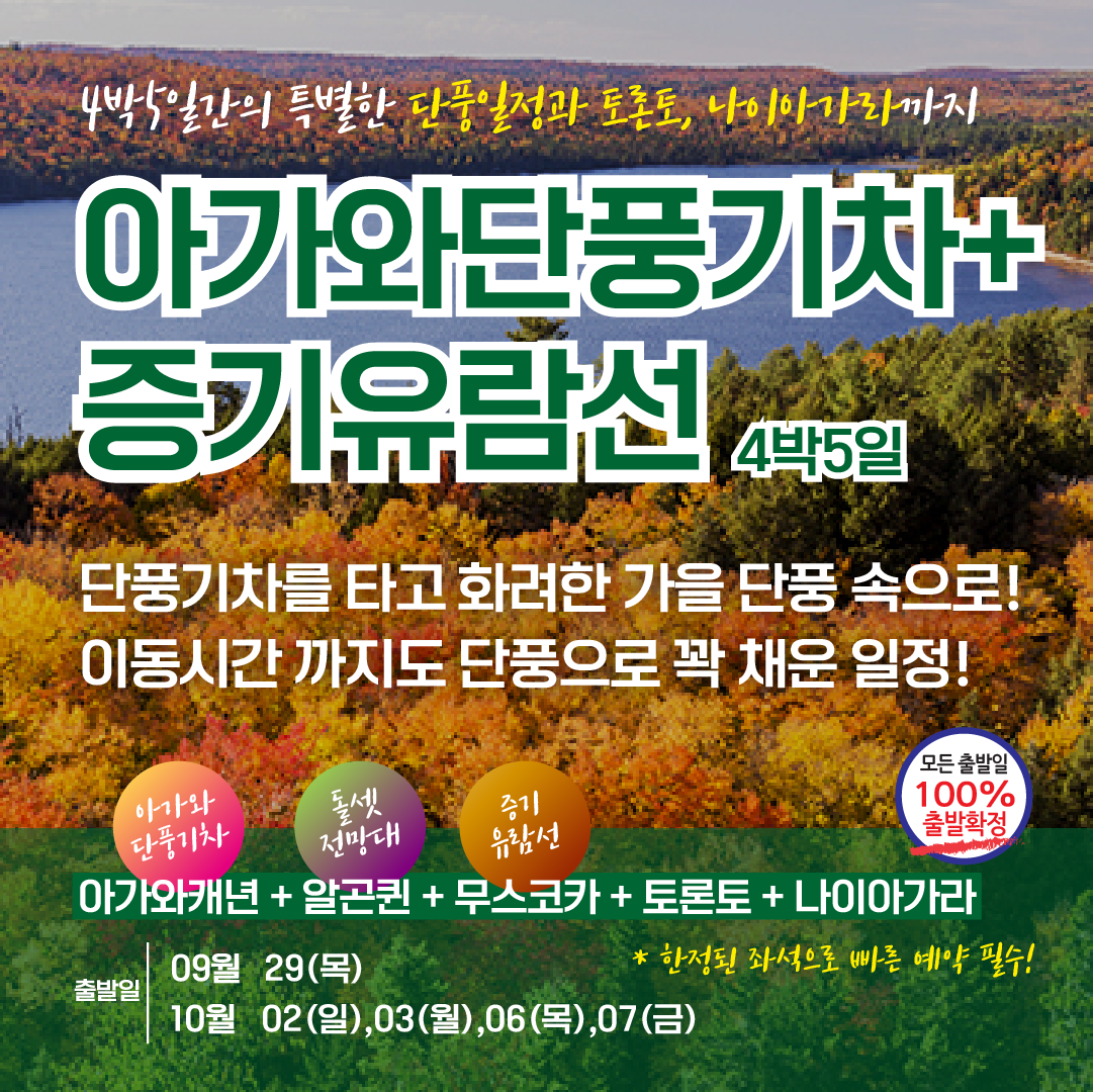 퀘벡+몽트랑블랑[2박3일] https://www.parantours.com/tours-detail.php?item_number=QB2N3D_BE_09M-10M 캐나다동부+몽드랑블랑[4박5일] https://www.parantours.com/tours-detail.php?item_number=CAE4N5D_BE_09M-10M 아가와단풍기차+증기유람선[2박3일] https://www.parantours.com/tours-detail.php?item_number=AGW2N3D 아가와단풍기차+증기유람선[4박5일] https://www.parantours.com/tours-detail.php?item_number=AGW4N5D 단풍길[3박4일] https://www.parantours.com/tours-detail.php?item_number=MPLD3N4D 단풍길[5박6일] https://www.parantours.com/tours-detail.php?item_number=MPLD5N6D 무스코카+알곤퀸[1일] https://www.parantours.com/tours-detail.php?item_number=MUSKOKA1D ![]() ![]() ![]() ![]() ![]() ![]() ![]() ![]() ![]() ![]() |