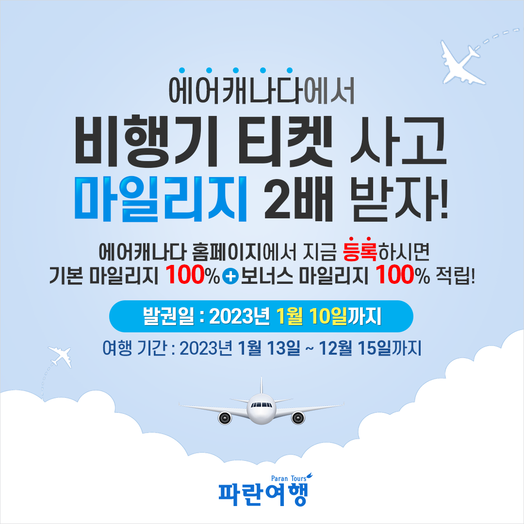 제목 에어캐나다에서 비행기 티켓 사고 마일리지 2배로 받자!