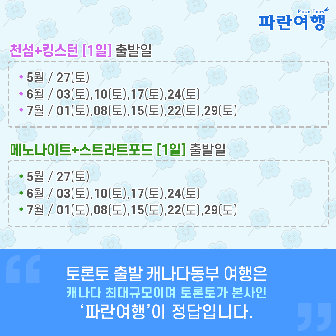 제목 [토론토 근교 봄나들이] 파란여행과 함께하는 [1일]투어 인기상품 모음