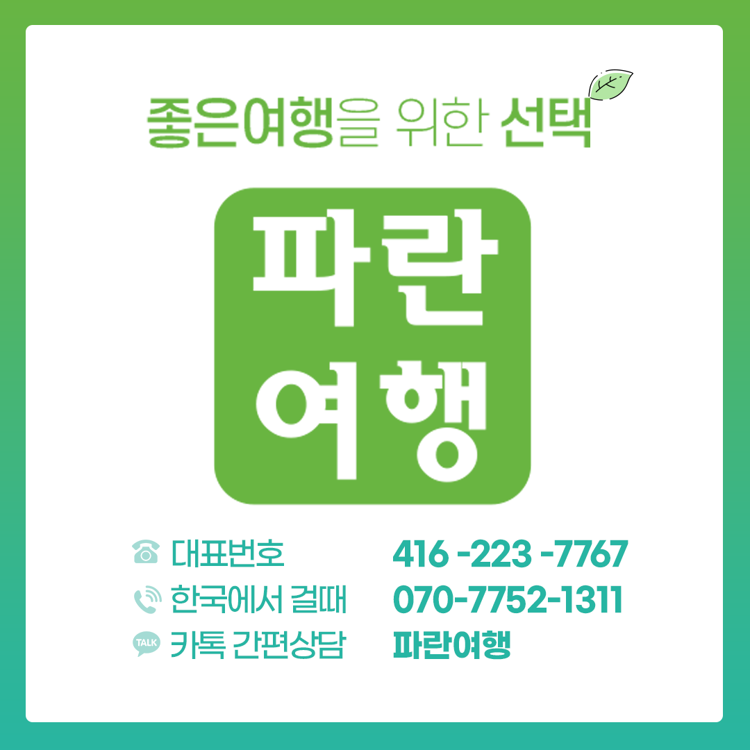 캐나다동부출발 여행상품의 시장점유율 96.89%가 입증하는 캐나다 최대규모 한인여행사 '파란여행'