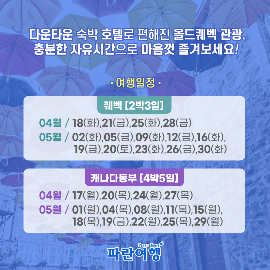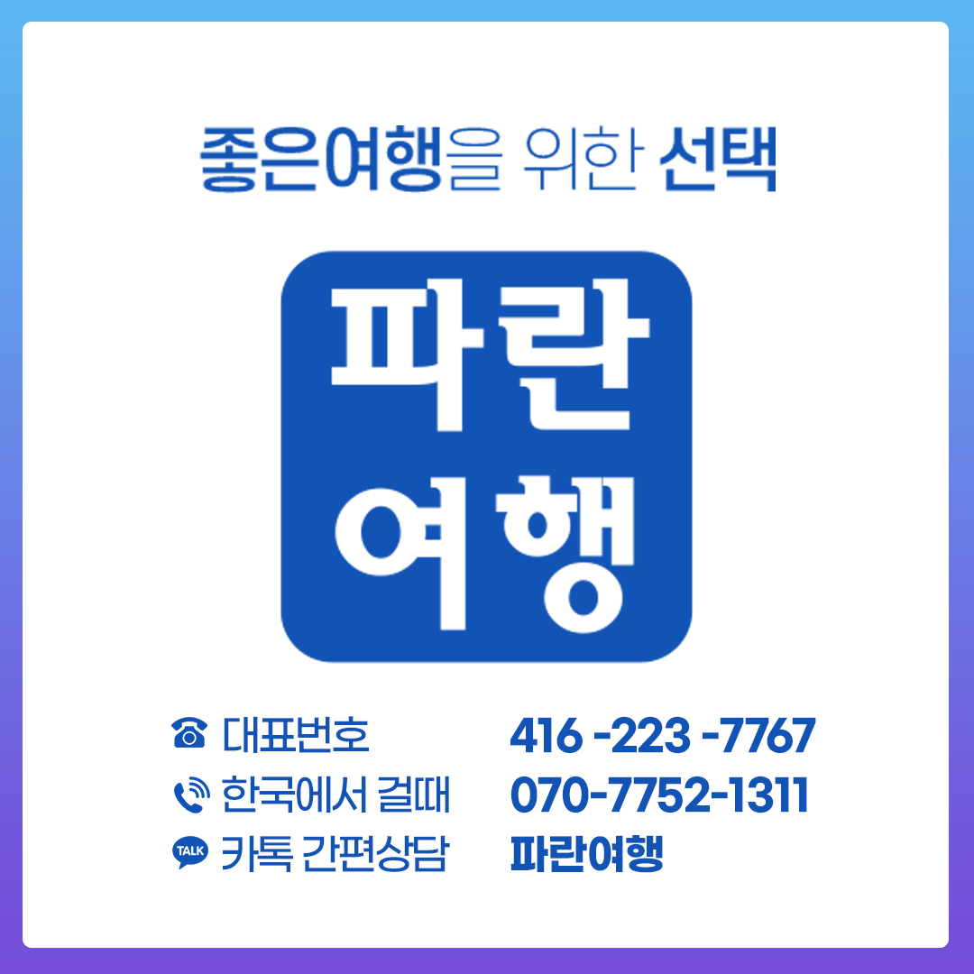 캐나다동부출발 여행상품의 시장점유율 96.89%가 입증하는 캐나다 최대규모 한인여행사 '파란여행'