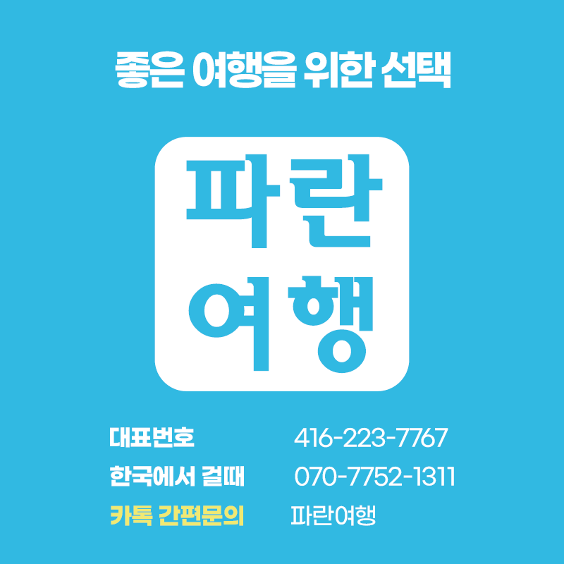 캐나다동부출발 여행상품의 시장점유율 96.89%가 입증하는 캐나다 최대규모 한인여행사 '파란여행'