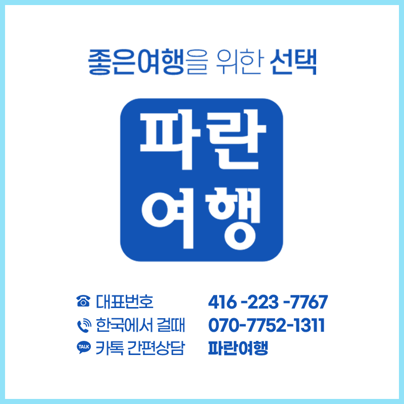 캐나다동부출발 여행상품의 시장점유율 96.89%가 입증하는 캐나다 최대규모 한인여행사 '파란여행'