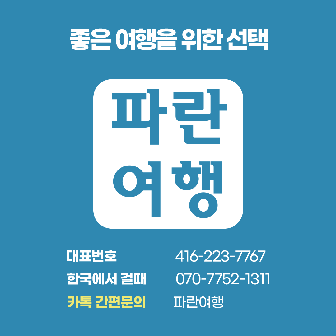 캐나다동부출발 여행상품의 시장점유율 96.89%가 입증하는 캐나다 최대규모 한인여행사 '파란여행'