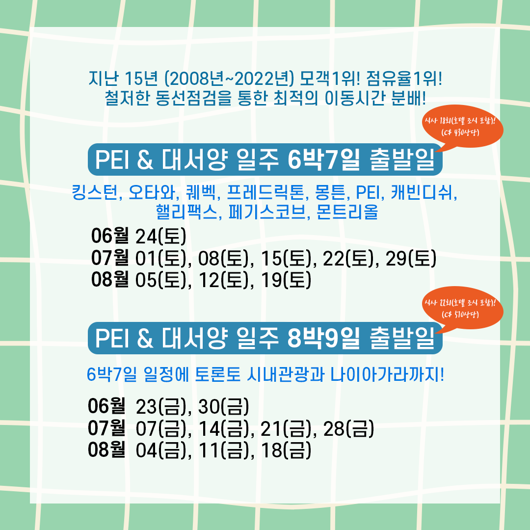 제목 | 1년의 기다림! 다시 돌아온 PEI의 계절! PEI & 대서양 일주 [6박7일/8박9일] | ||
