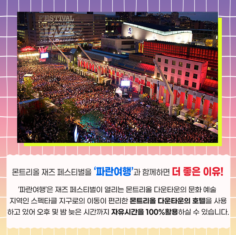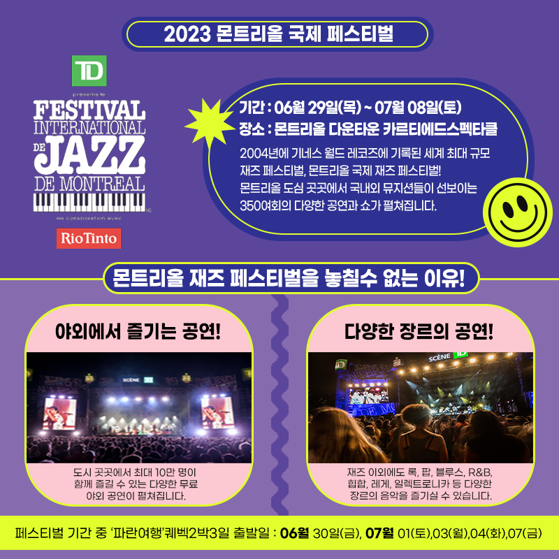 제목 '파란여행' 퀘벡2박3일 여행과 함께,힌반에 즐기는 2023 몬트리올 재즈 페스티벌