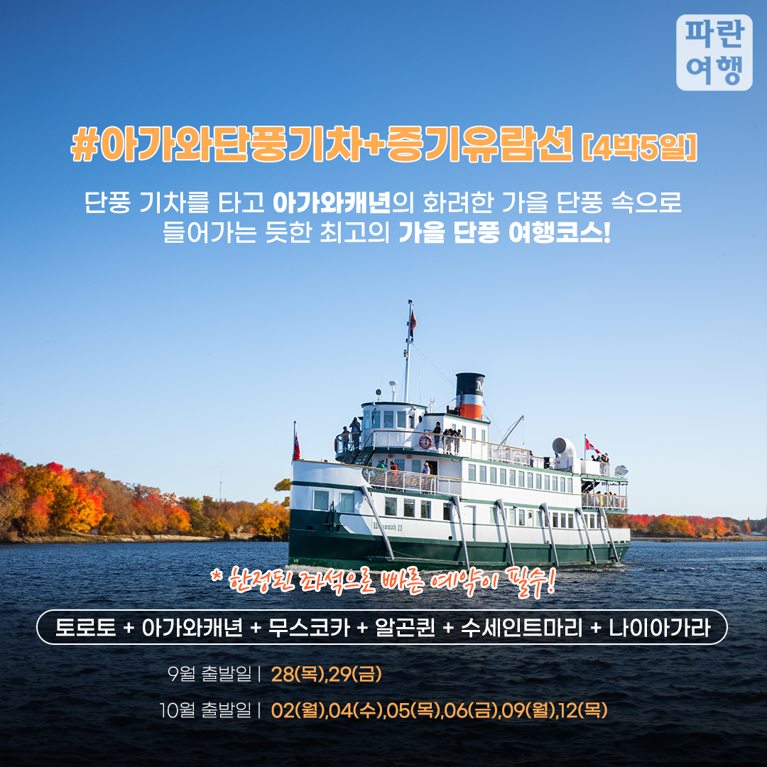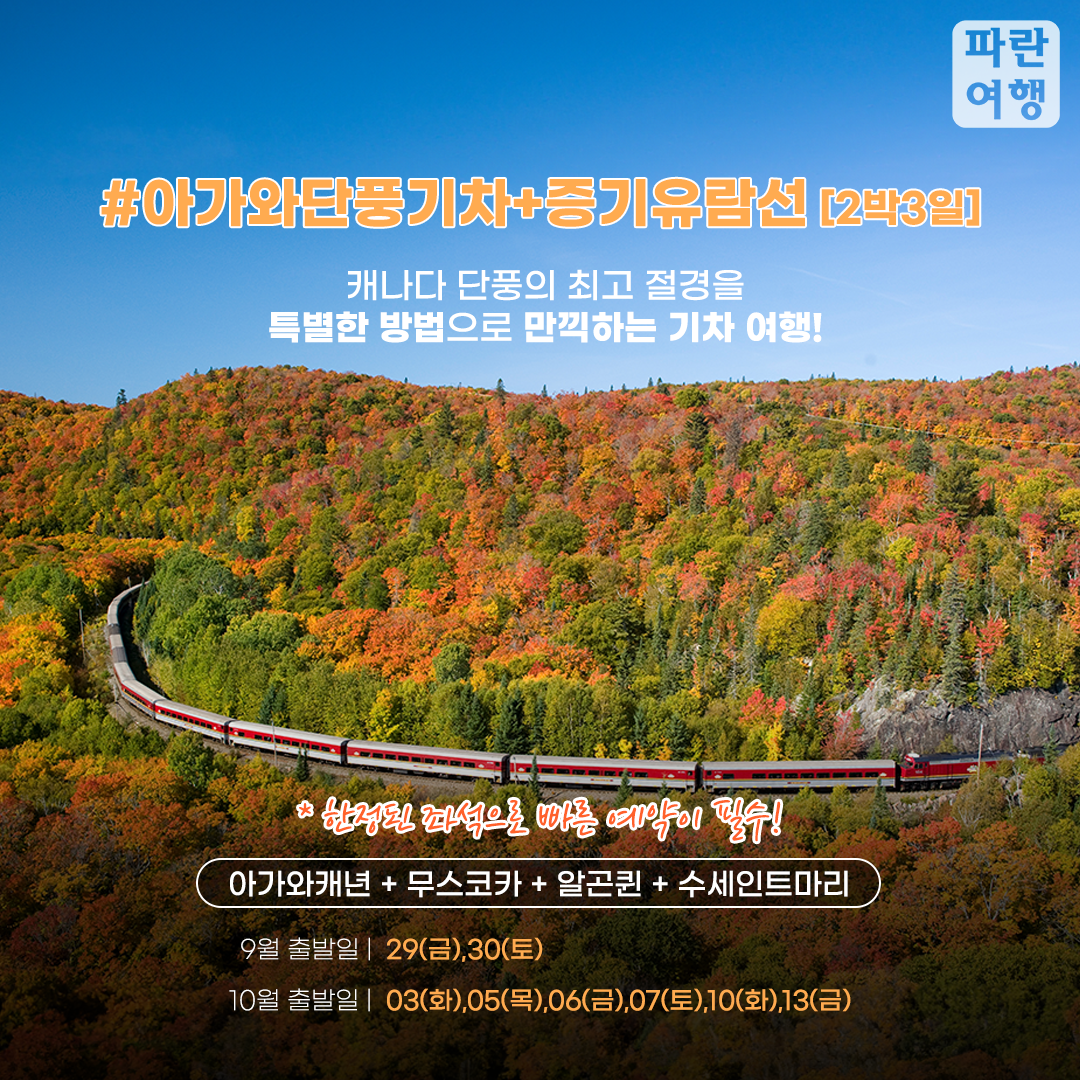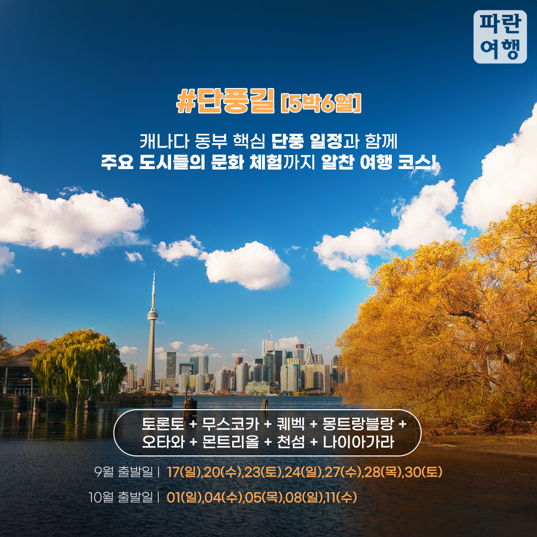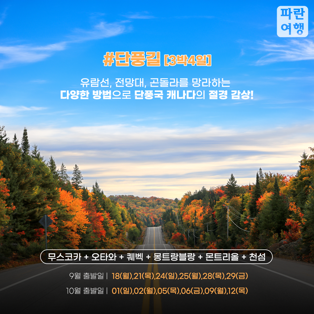 제목 이번가을, '파란여행'에서 준비한 다양한 단풍 여행을 놓치지 마세요!