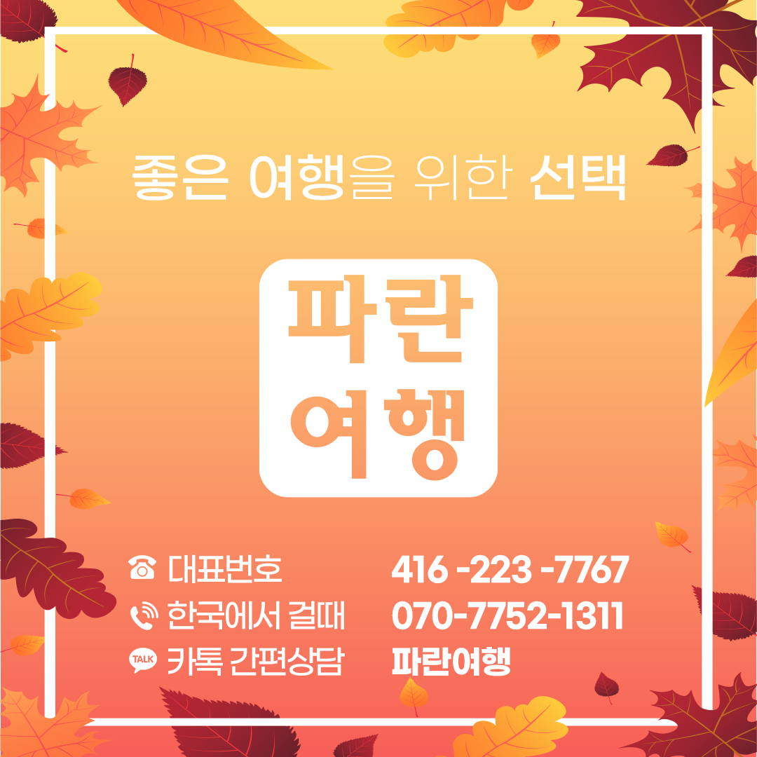 캐나다동부출발 여행상품의 시장점유율 96.89%가 입증하는 캐나다 최대규모 한인여행사 '파란여행'