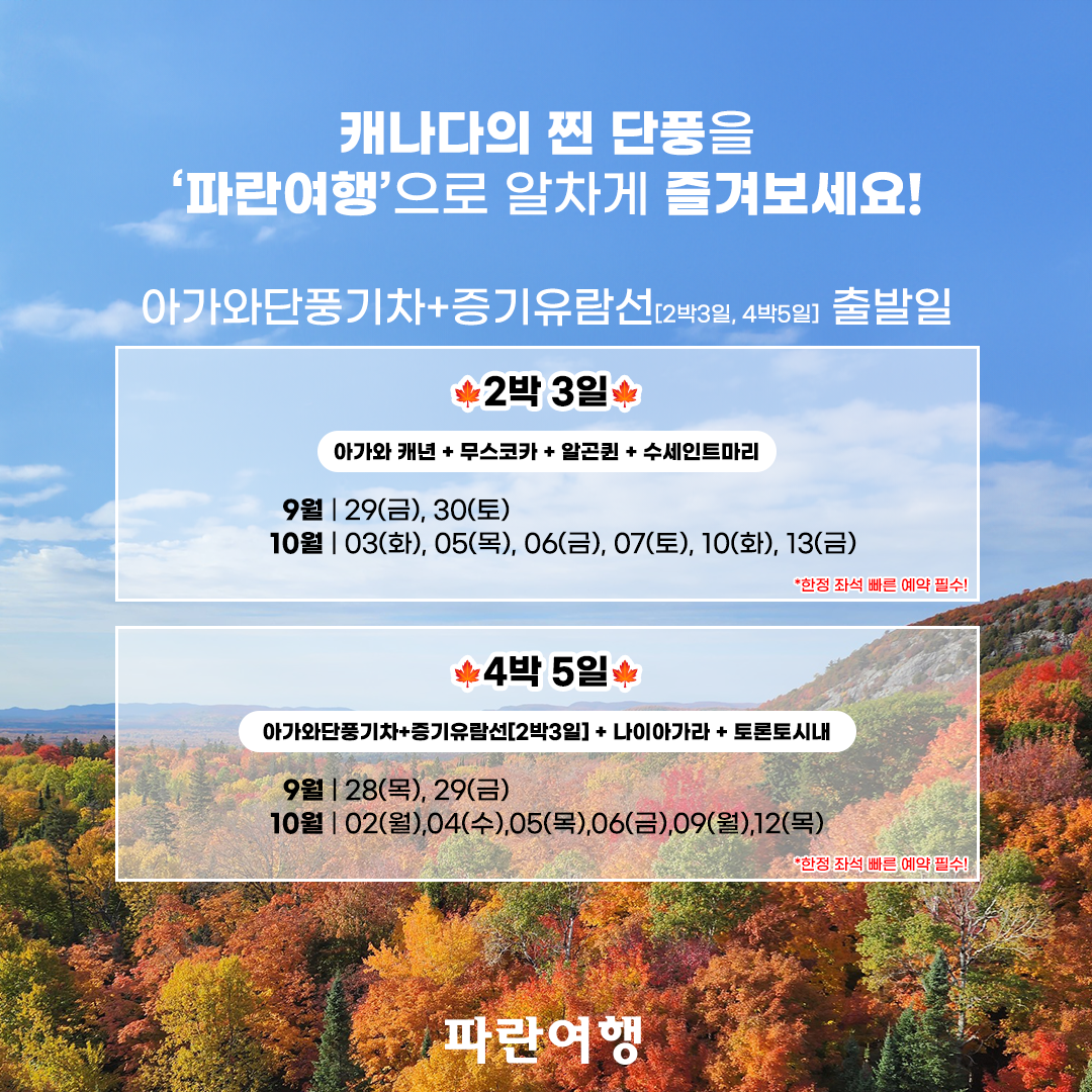 캐나다동부출발 여행상품의 시장점유율 96.89%가 입증하는 캐나다 최대규모 한인여행사 '파란여행'