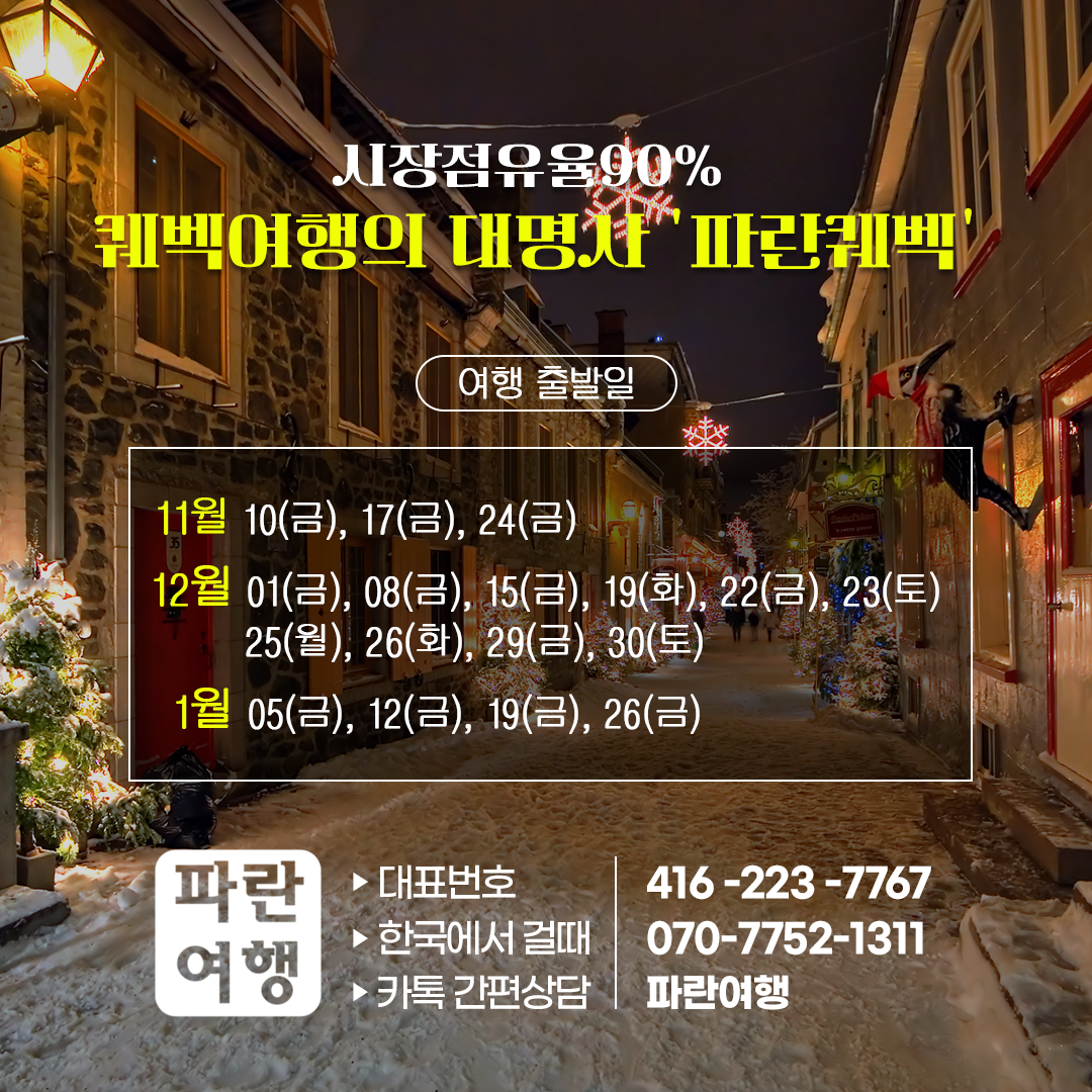 캐나다동부출발 여행상품의 시장점유율 96.89%가 입증하는 캐나다 최대규모 한인여행사 '파란여행'