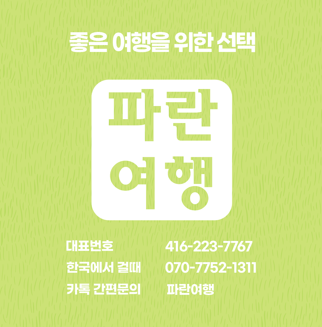 캐나다동부출발 여행상품의 시장점유율 96.89%가 입증하는 캐나다 최대규모 한인여행사 '파란여행'