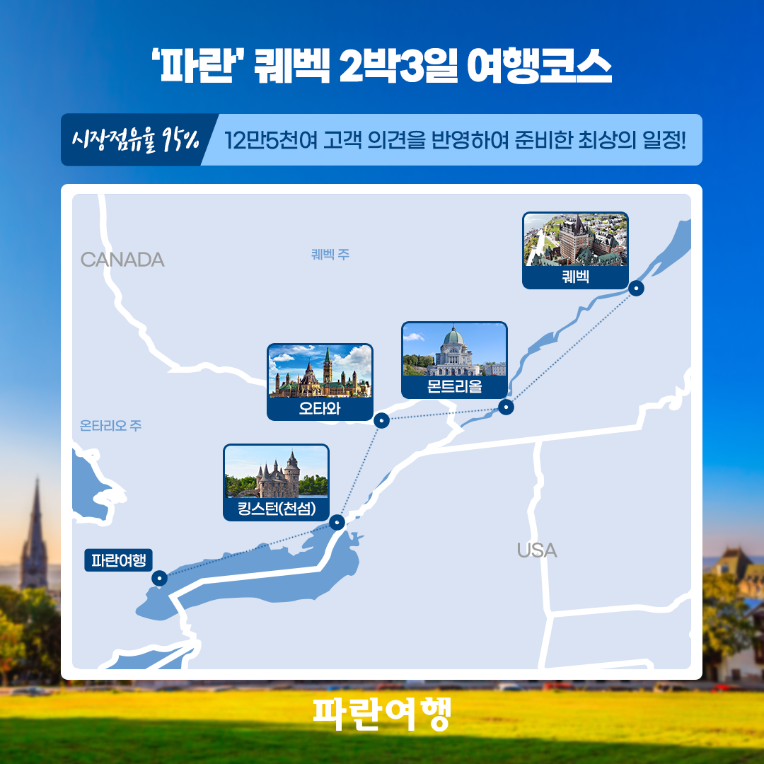 캐나다동부출발 여행상품의 시장점유율 96.89%가 입증하는 캐나다 최대규모 한인여행사 '파란여행'