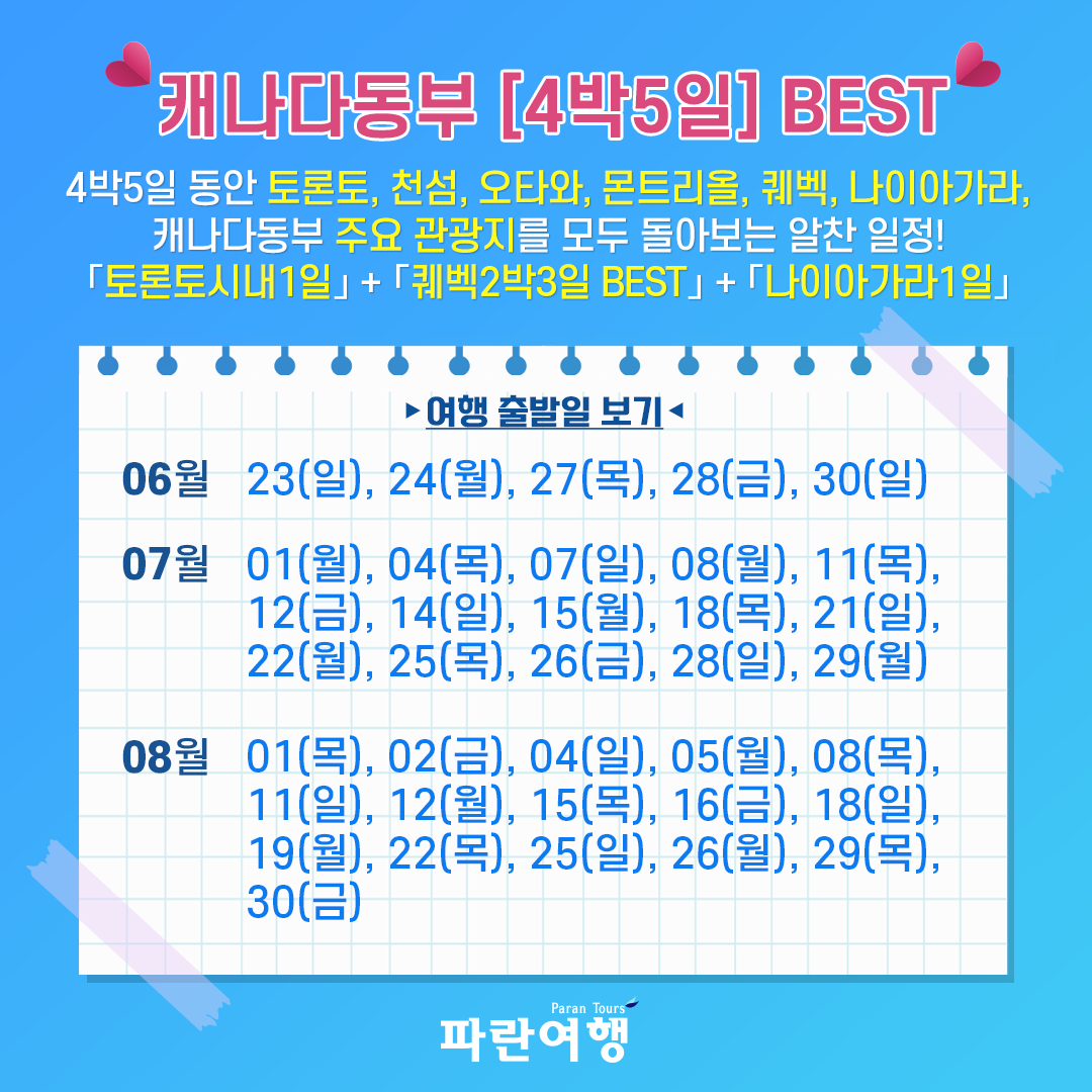 캐나다동부출발 여행상품의 시장점유율 96.89%가 입증하는 캐나다 최대규모 한인여행사 '파란여행'