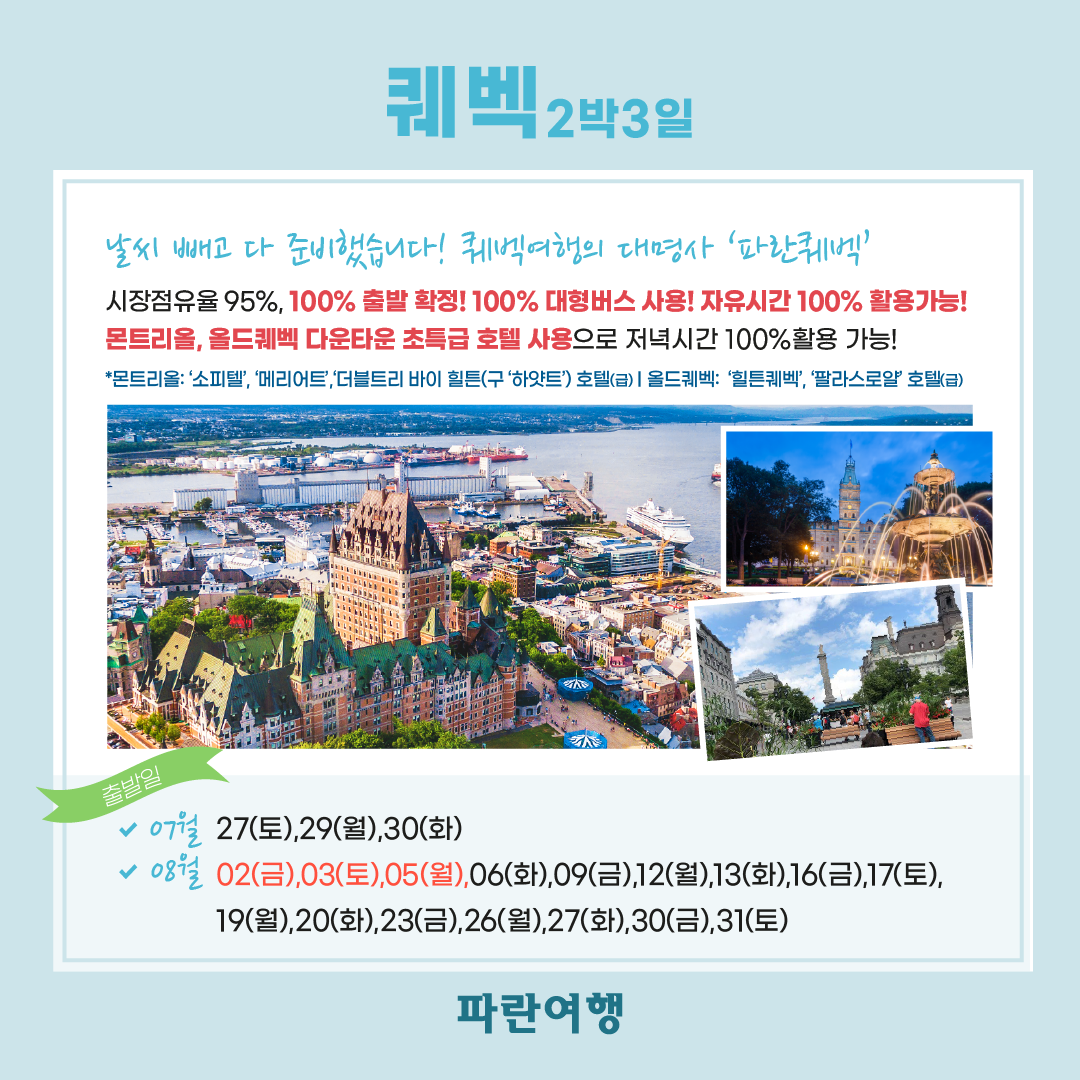 캐나다동부출발 여행상품의 시장점유율 96.89%가 입증하는 캐나다 최대규모 한인여행사 '파란여행'