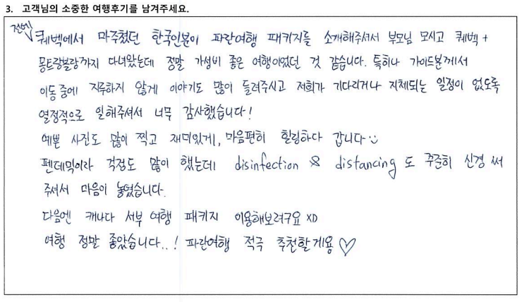 캐나다동부출발 여행상품의 시장점유율 96.89%가 입증하는 캐나다 최대규모 한인여행사 '파란여행'