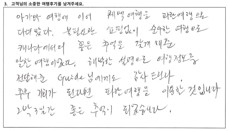 캐나다동부출발 여행상품의 시장점유율 96.89%가 입증하는 캐나다 최대규모 한인여행사 '파란여행'