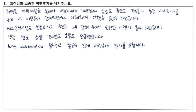 제목 | 2021년 10월 09일 퀘벡+몽트랑블랑 2박3일 1호차 후기 | ||
