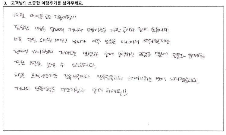 제목 | 2021년 10월 10일 무스코카+알곤퀸 1일 후기 | ||