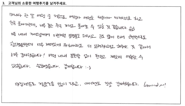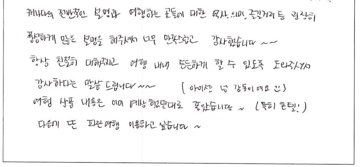 제목 | 2022년02월18일 출발한 퀘벡 2박3일 자필후기 | ||