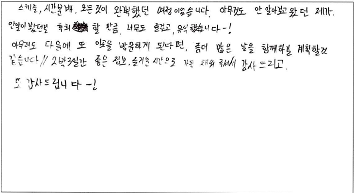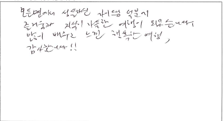 제목 | 2022년06월10일 출발 퀘벡 자필후기 | ||