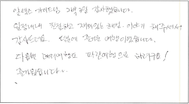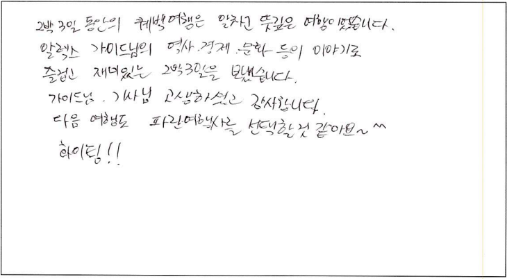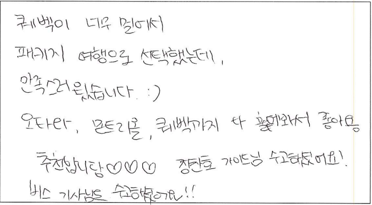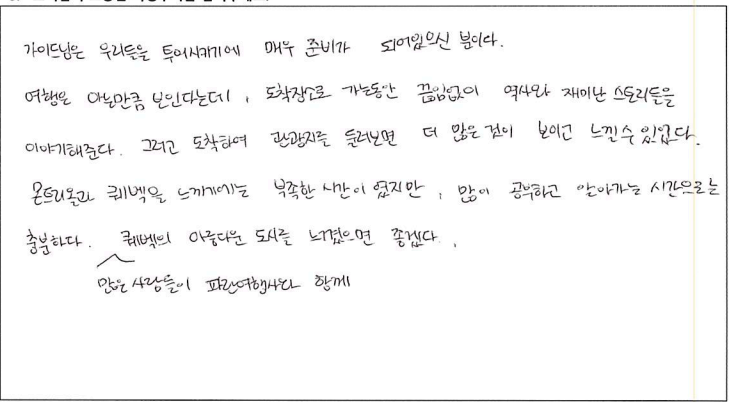 제목 | 2022년06월25일 출발 퀘벡 자필후기 | ||