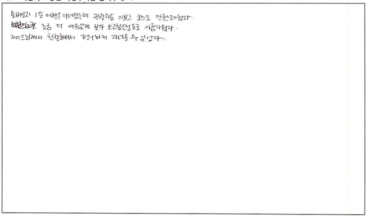 제목 | 2022년07월09일 출발 토버모리1일 자필후기 | ||