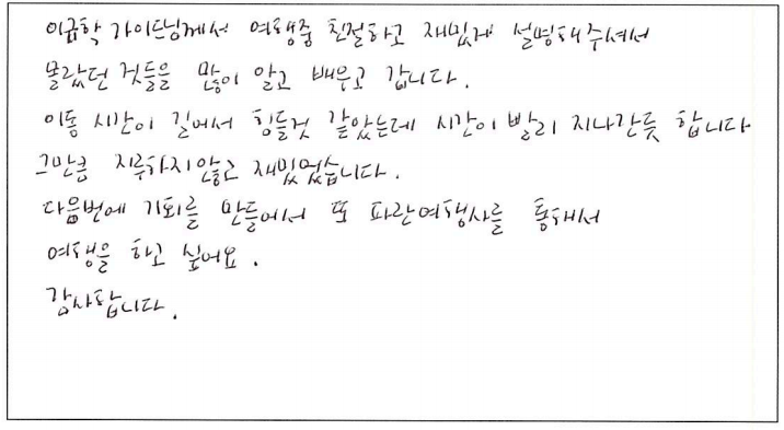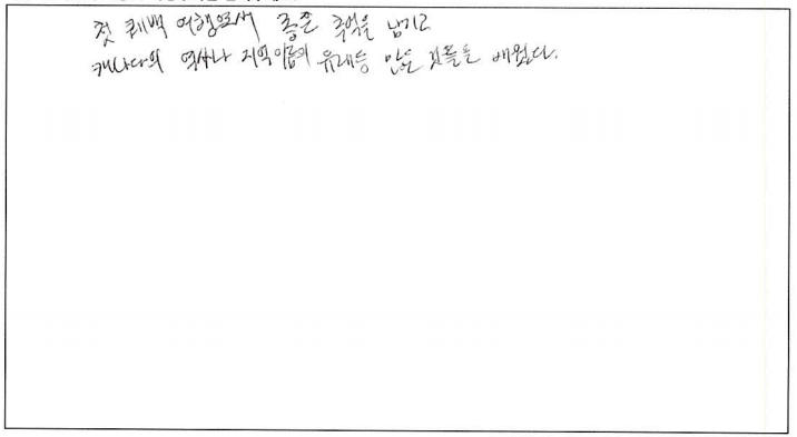 제목 | 2022년08월05일 출발 퀘벡 자필후기 | ||