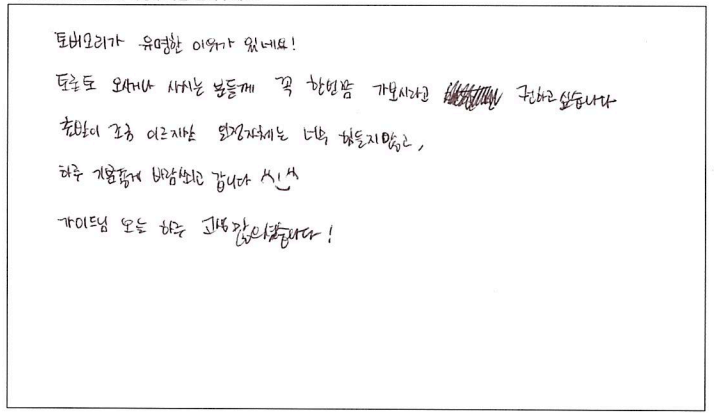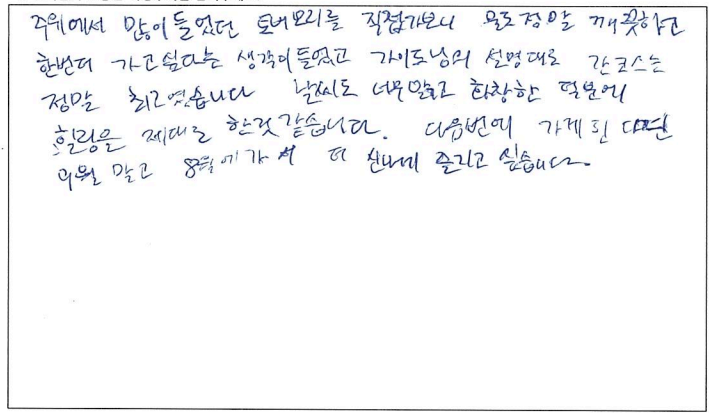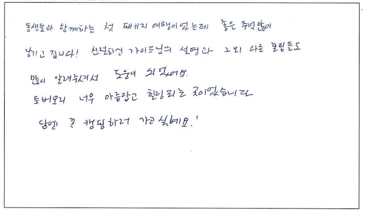 제목 | 2022년09월05일 출발 토버모리1일 자필후기 | ||