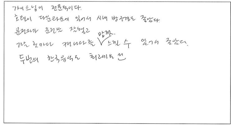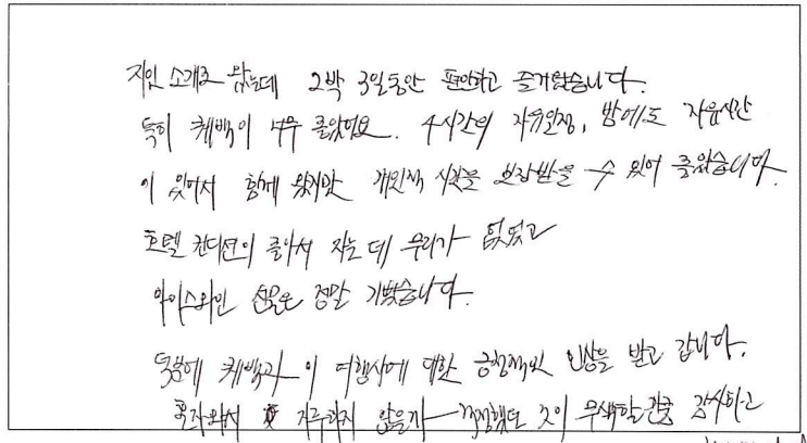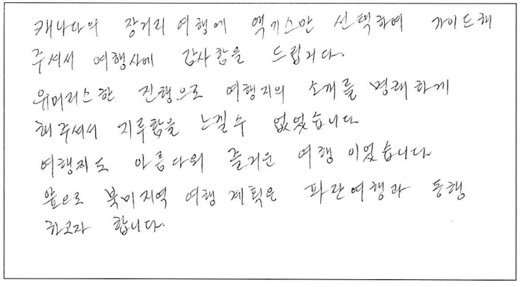 제목 | 2022년09월09일 출발 퀘벡 자필후기 | ||