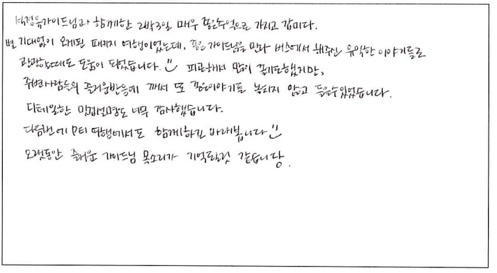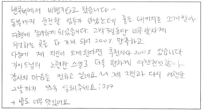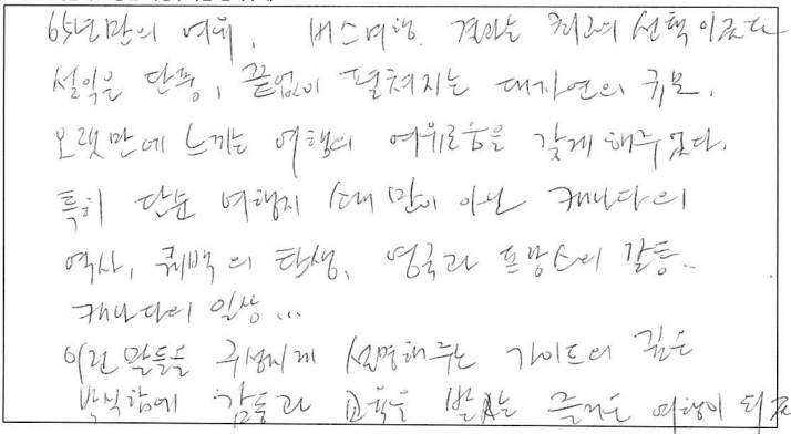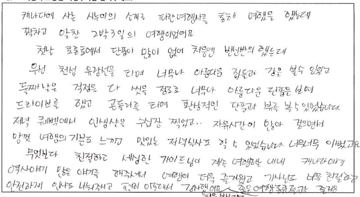제목 | 2022년09월30일 출발 퀘벡+몽트랑블랑 자필후기(2-2호차) | ||