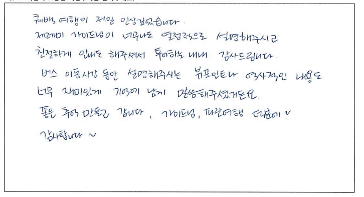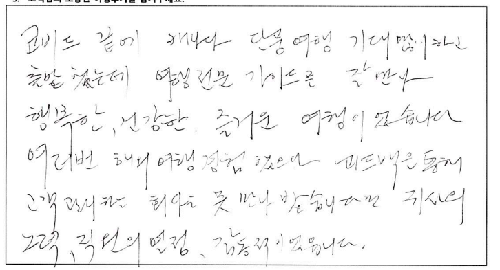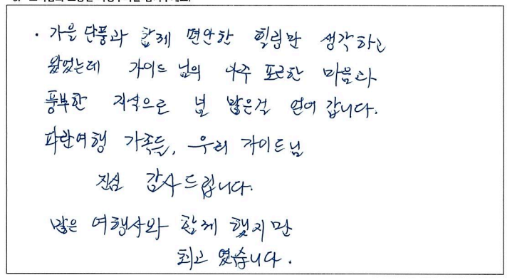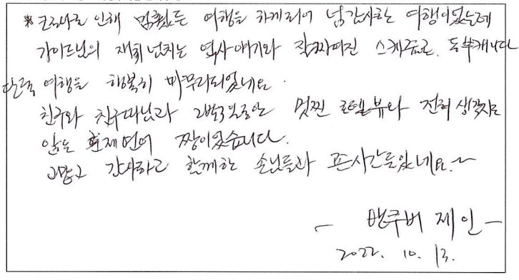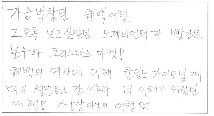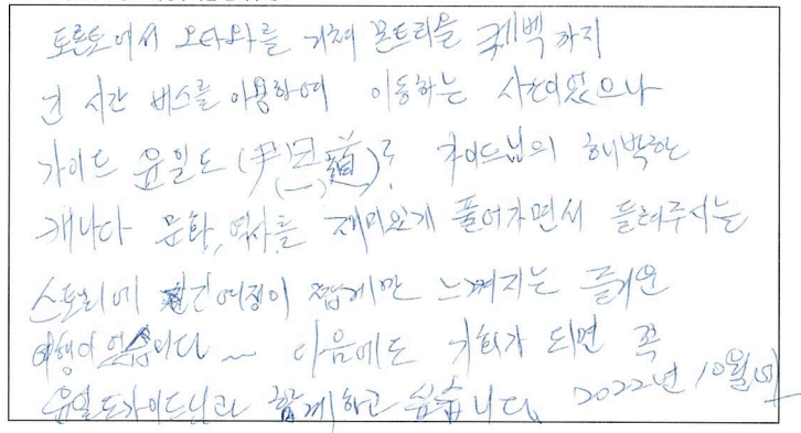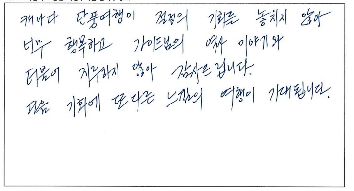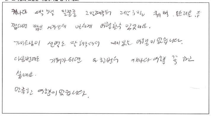 제목 | 2022년10월11일 출발 퀘벡+몽트랑블랑 자필후기(2-1호차) | ||