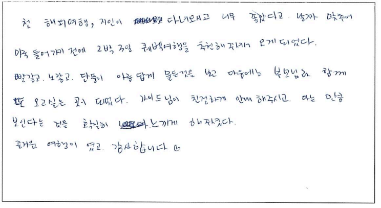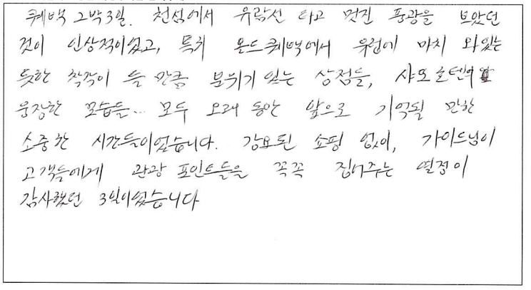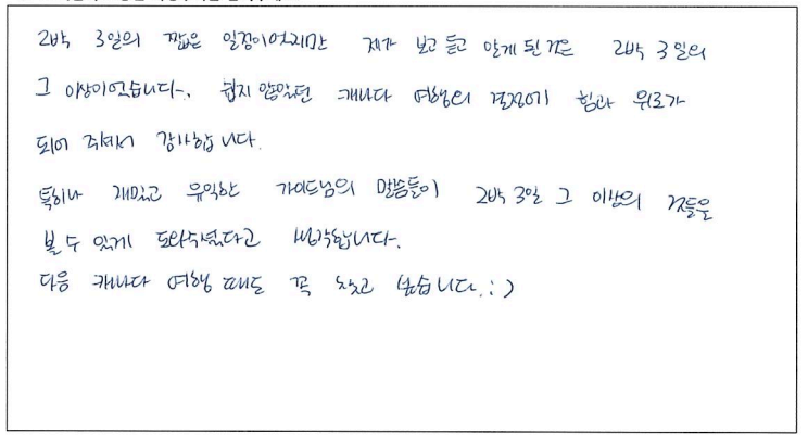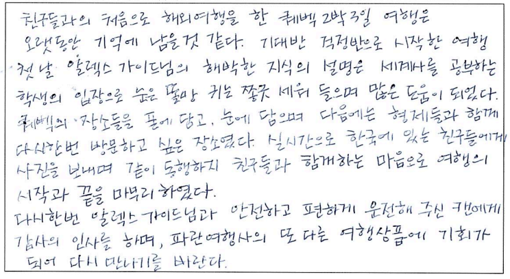 제목 | 2022년10월14일 출발 퀘벡+몽트랑블랑 자필후기(2-2호차) | ||