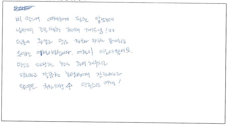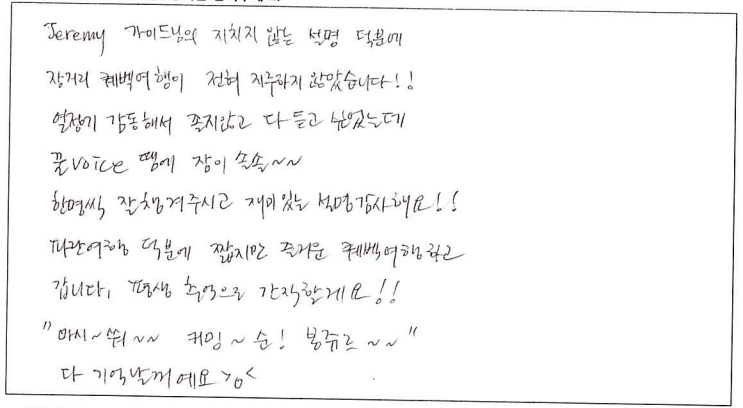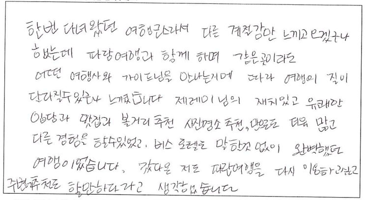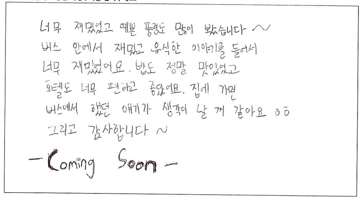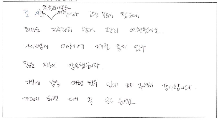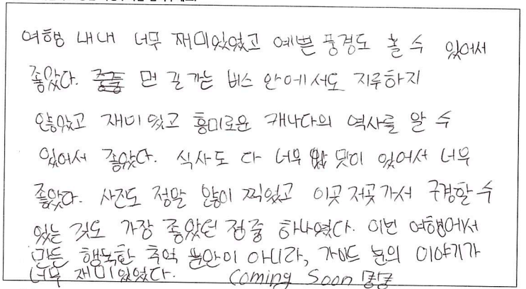 제목 | 2022년11월11일 출발 퀘벡 자필후기 | ||