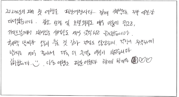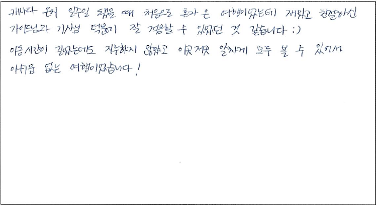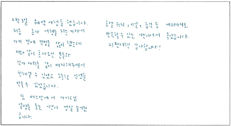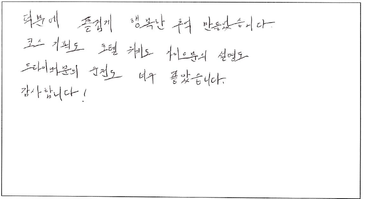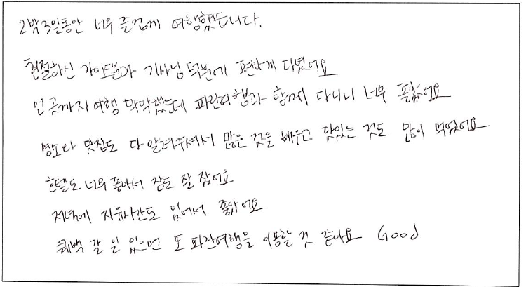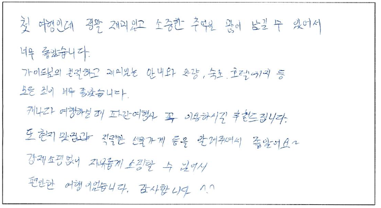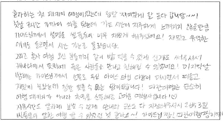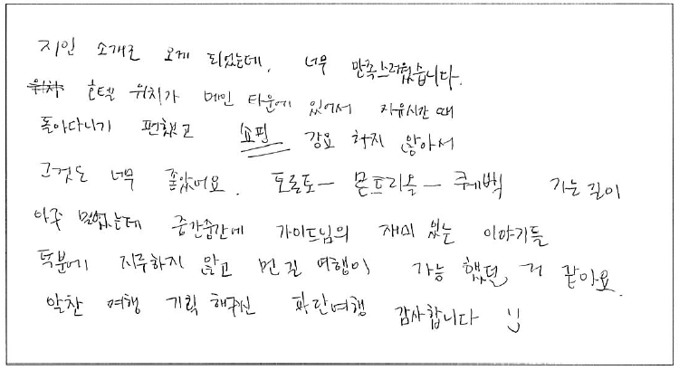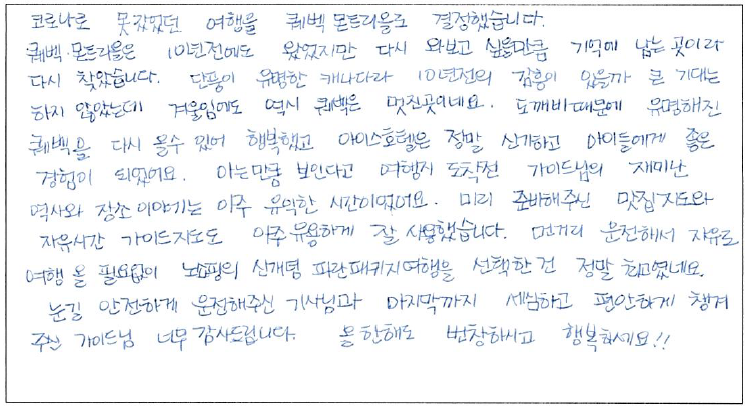 제목 | 2023년 01월 06일 출발 퀘벡 자필 후기 | ||