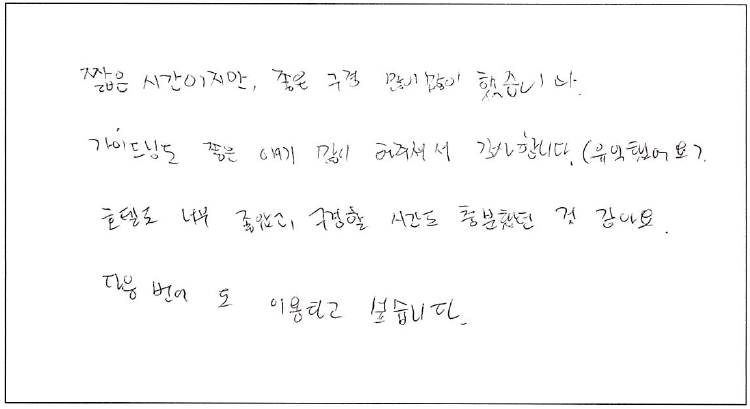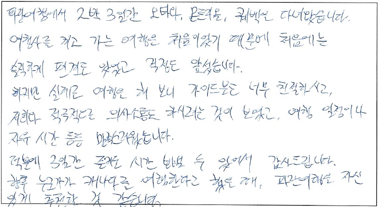 제목 | 2023년 2월 10일 출발 퀘벡 자필 후기 | ||