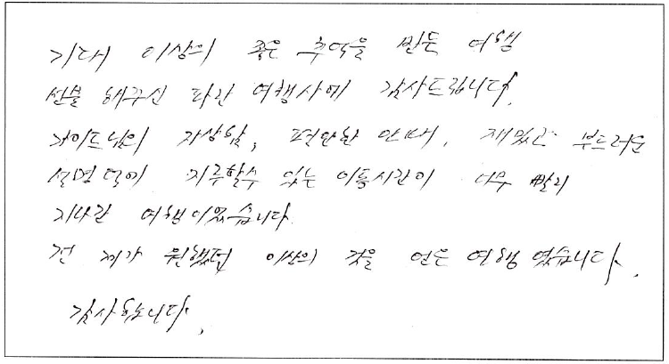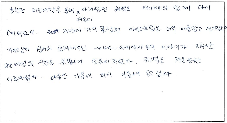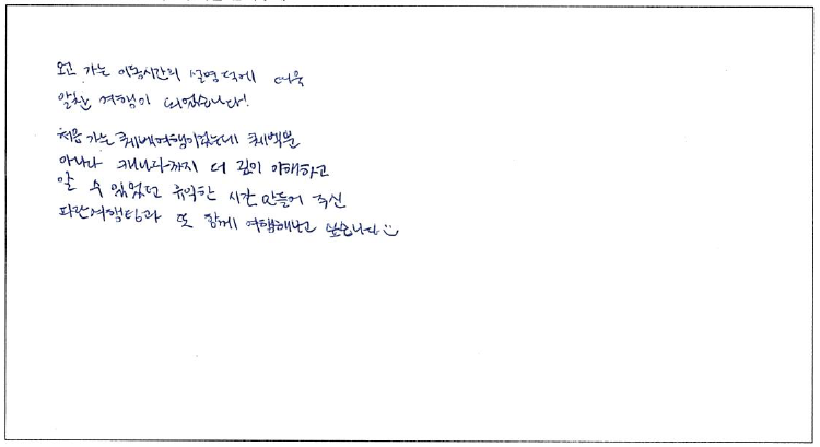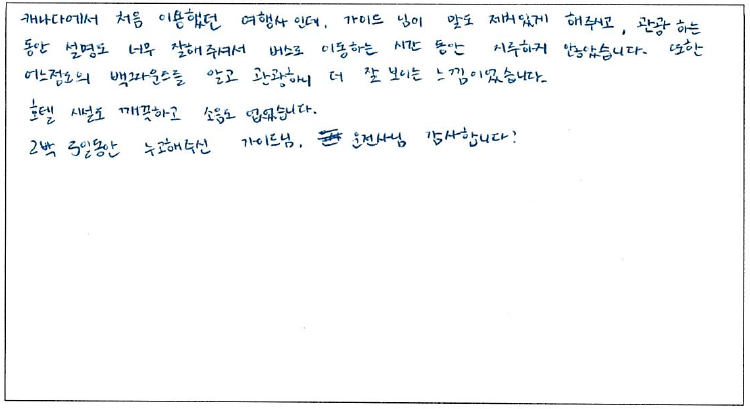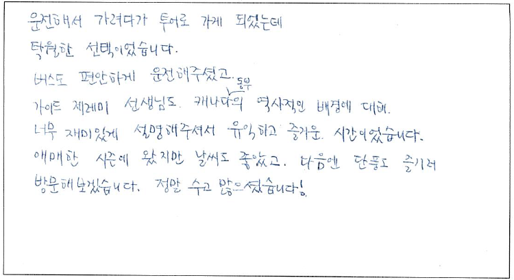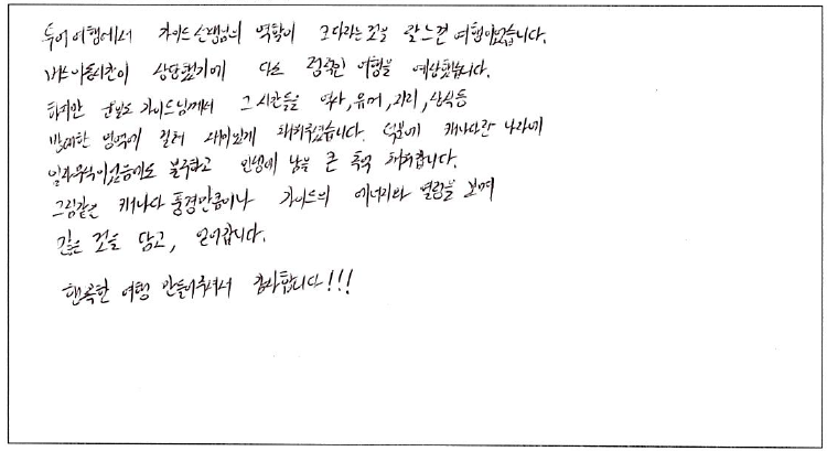 제목 | 2023년 03월 11일 출발 퀘벡 자필후기 | ||